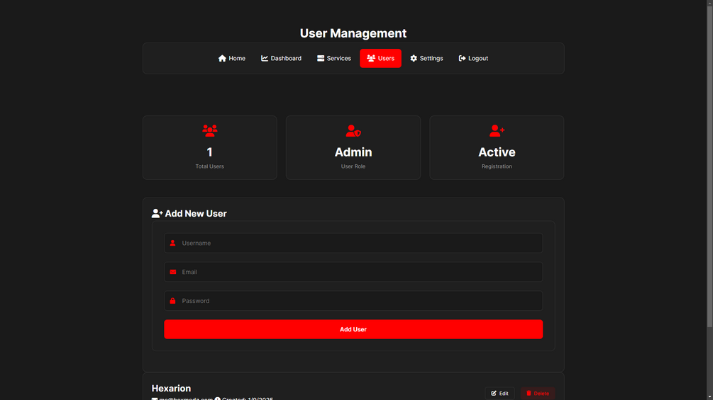 - Advanced modals for service editing and status management.